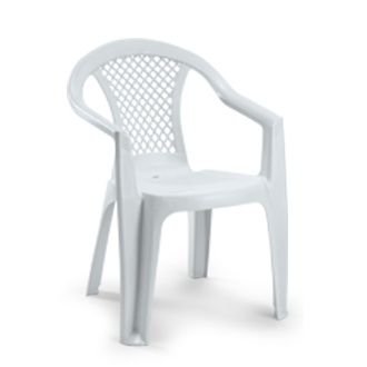 Em polipropileno virgem, monobloco e empilhável.
